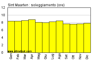 Media mensile del numero di ore di sole per giorno.