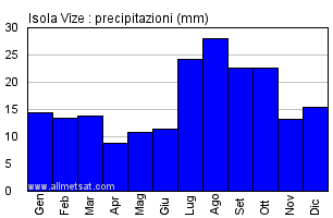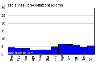 | Numero di giorni con precipitazione ≥ 1 mm |