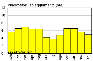 Media mensile del numero di ore di sole per giorno.