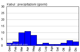 | Numero di giorni con precipitazione ≥ 1 mm |
