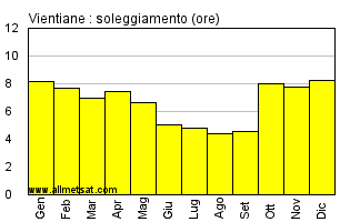 | Media mensile del numero di ore di sole per giorno. |