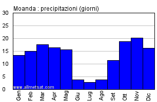 | Numero di giorni con precipitazione ≥ 1 mm |