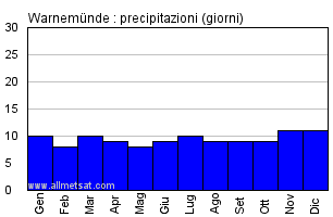 | Numero di giorni con precipitazione ≥ 1 mm |