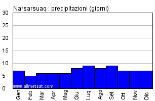| Numero di giorni con precipitazione ≥ 1 mm |