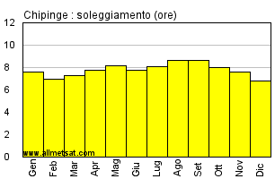 Media mensile delle temperature minime e massime quotidiane. °C/°F |