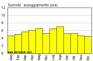 | Media mensile delle temperature minime e massime quotidiane. °C/°F |