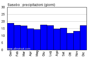| Numero di giorni con precipitazione ≥ 1 mm |