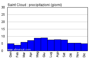 | Numero di giorni con precipitazione ≥ 1 mm |